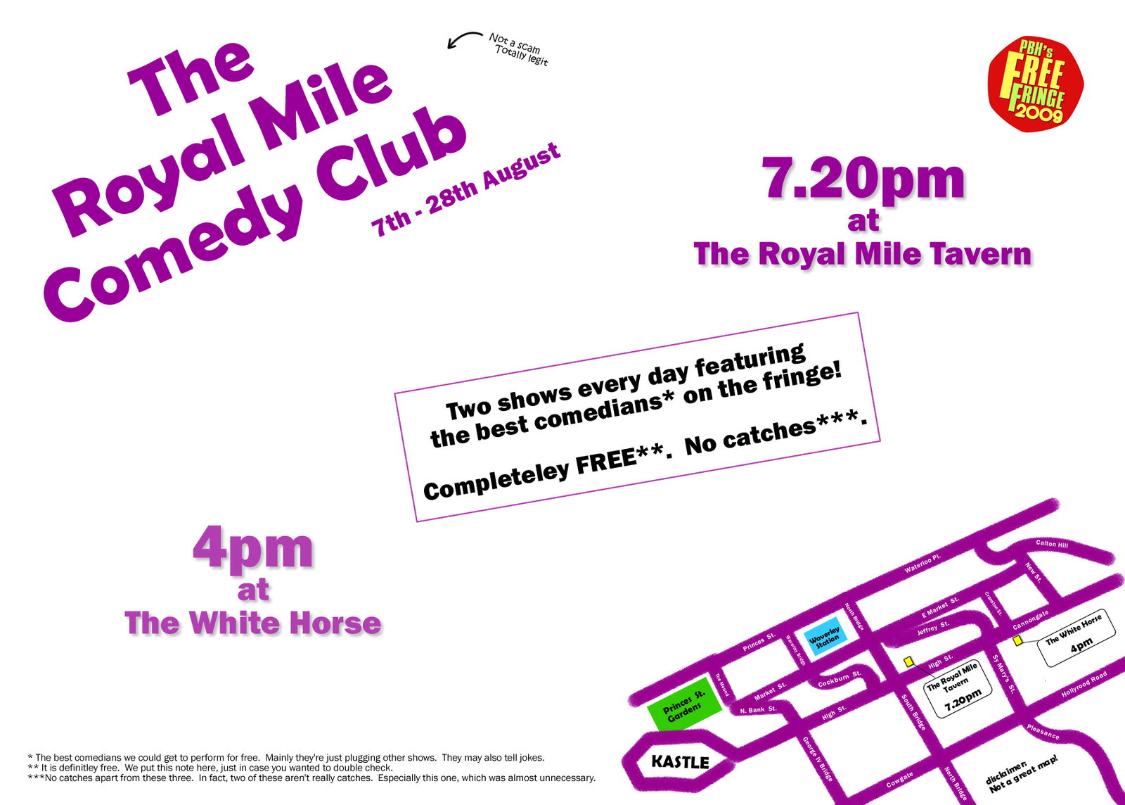 Programmed as part of the Edinburgh Fringe Festival 2010, the Royal Mile Comedy Club was also part of the PBH Free Fringe programme, allowing audience members to experience high quality stand-up comedy free of charge.